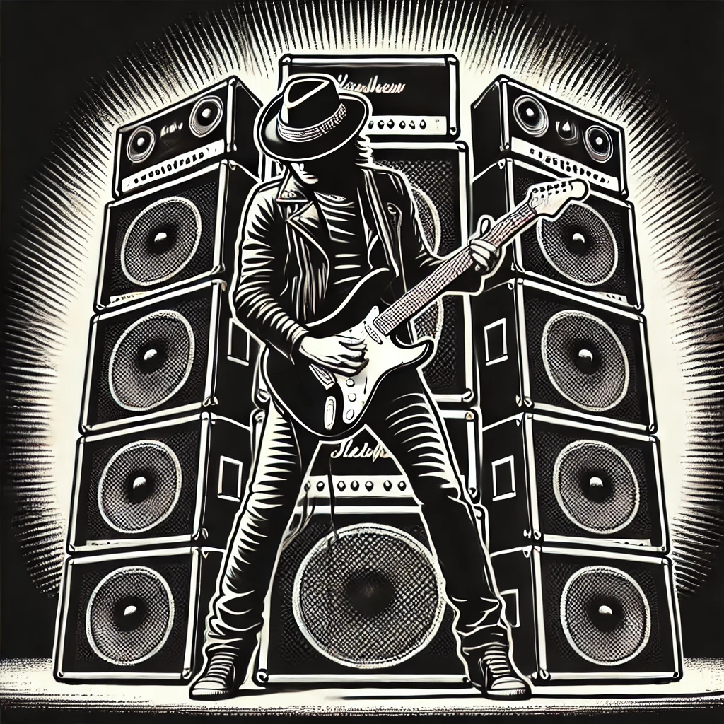Our speaker matches this power, it is 15W. As you can see in the graph Fig3 in the theoretical background, the output voltage cannot be higher than the supply voltage. Therefore, if the gain is high around 100 as in the design, then in the specified items when the amplitude is about 150mV the output voltage should be 15V which is above the supply voltage of 12V minus the voltage falling on the transistor Vcc – Vce sat. Therefore, in this situation there will be a reduction in the output voltage which means that it will not be like the original voltage and it will be distorted. But distortion is good for us in certain situations. In music this is called overdrive which sounds like a loud and aggressive growling sound. This is an effect that became common in rock music and gives the music the sound of rock. This was first introduced by legendary guitarist Jimi Hendrix who came to London in 1966 and connected to a Marshall amplifier. Then he raised every knob on the amplifier to maximum and strummed.