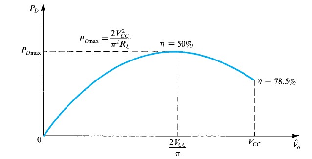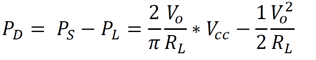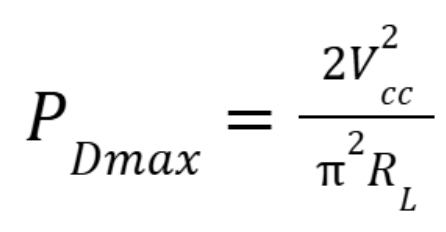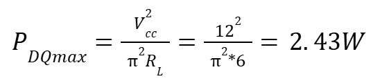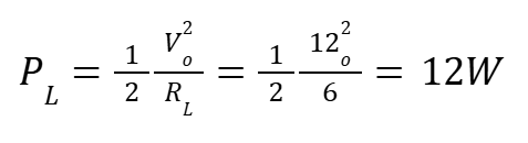 When referring to the power dissipated on the transistors, we consider the maximum power developed on each transistor. So let’s put a 12V supply voltage and 6 ohm load in equation 9 and see what we get: