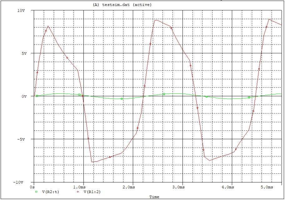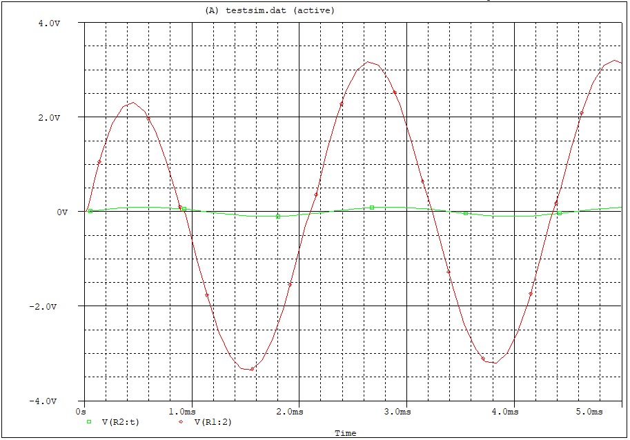 – The guitar input is represented as a 200mV 2kHz signal (V3).