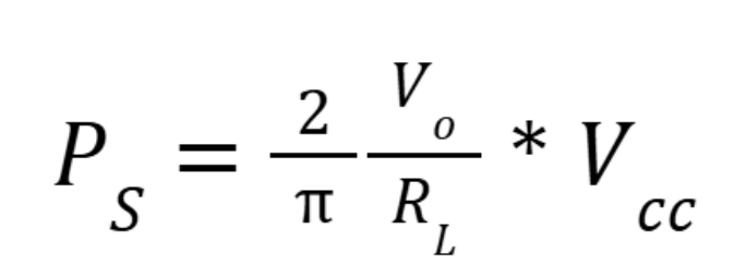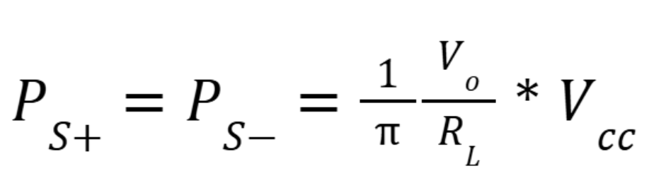 The current drawn from each power supply (+Vcc, -Vcc) is always a half sine wave with an amplitude of Vo/VL. So that the average current can be described like so: