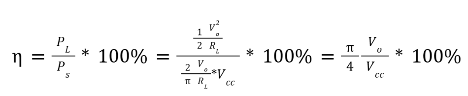 To understand the energy conversion efficiency of the power amplifier, we calculate the efficiency as the ratio of the output power to the total power supplied by the power source, expressed as a percentage: